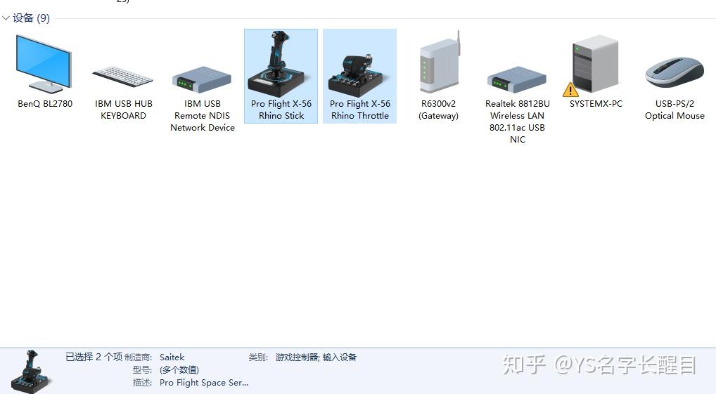 Windows下识别出X56套拆设备也是分为摇杆和油门两部门,那给一些游戏的按键设置带来了费事,详细看我后面的详述。