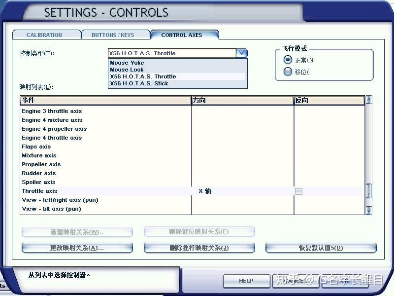 好比下图中微软的形式飞翔FSX,就需要把Throttl(节流阀)控造从默认摇杆上的Z轴,选择为X56油门组件的X轴上。