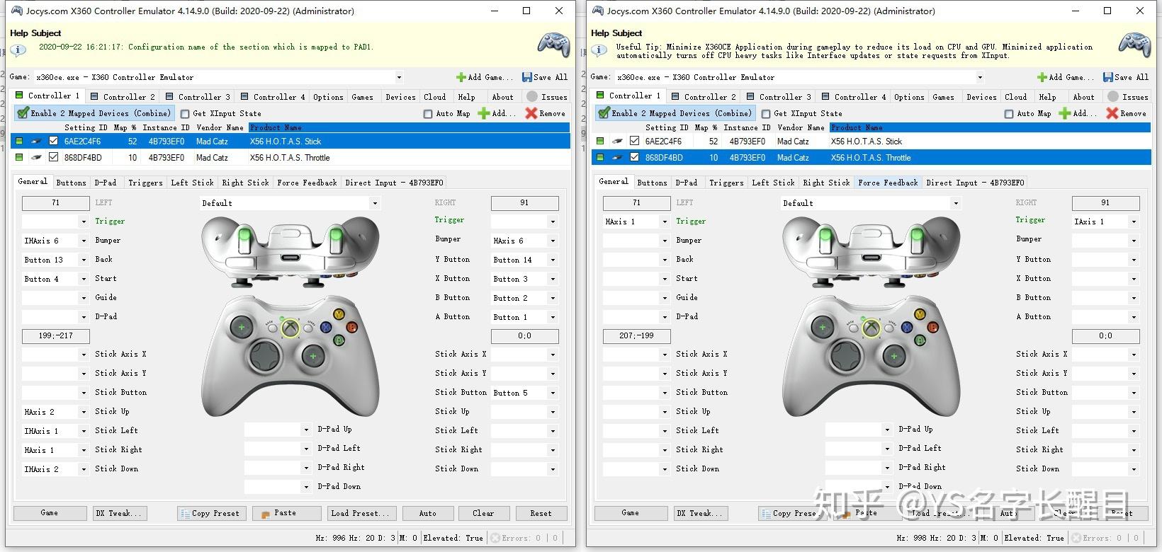 关于一些默认只撑持Xbox 360手柄的游戏(好比《皇牌空战7未知空域》非Steam版就不撑持自定义摇杆),除了利用X56驱动自带的映射功用外,我那里更保举利用第三方的X360CE软件来停止映射(那软件的益处就是简单)。翻开后选择适配游戏为Ace7(《皇牌空战7未知空域》)后选择+Add,那时同样会看到X56的摇杆Stick以及油门Throttle两个组件。