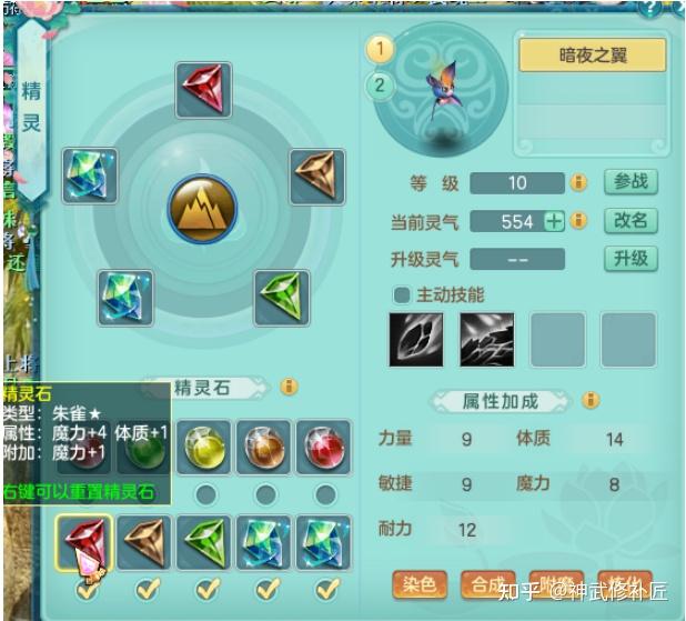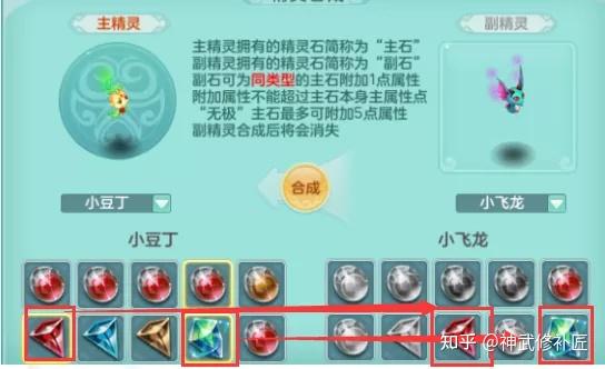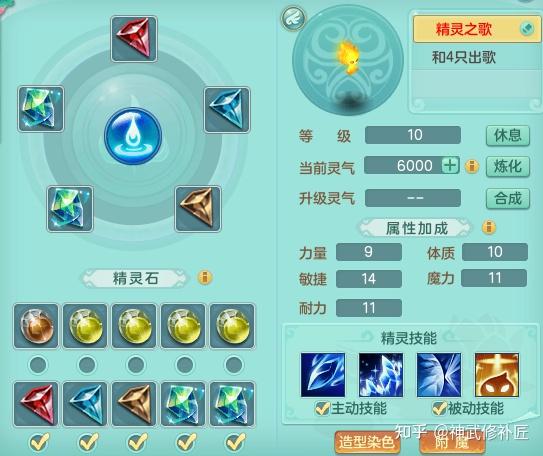7、两只精灵6-10的石头完美交融,主精灵更高能够多5点属性,6、7、8圣兽各1点,无极石2点。