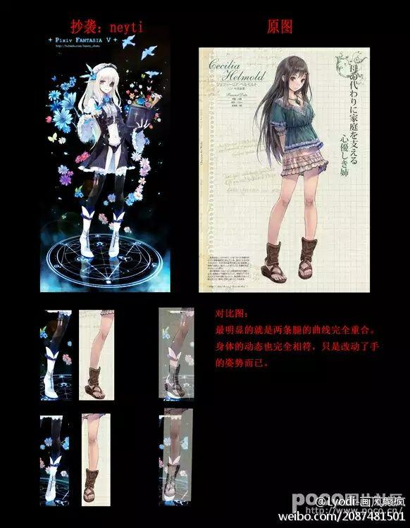 原图(右)是一起头说的Rella的早期V家同人图。不但剽窃动做,腿部能够重合,是描图。