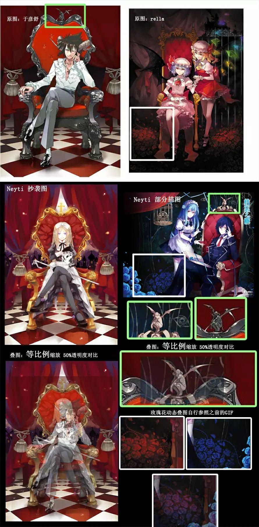 还有那一张,其时Neyti画来参与Pixiv的企划活动PF(就是根据企划主的剧情分几个国度阵营互相画图比人气的)的图,描图剽窃霓虹画师。