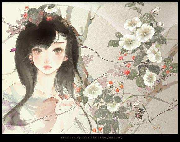 呀呀,画风走水墨国画风,获过金龙奖,做品常见于收集古风产物配图
