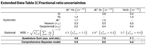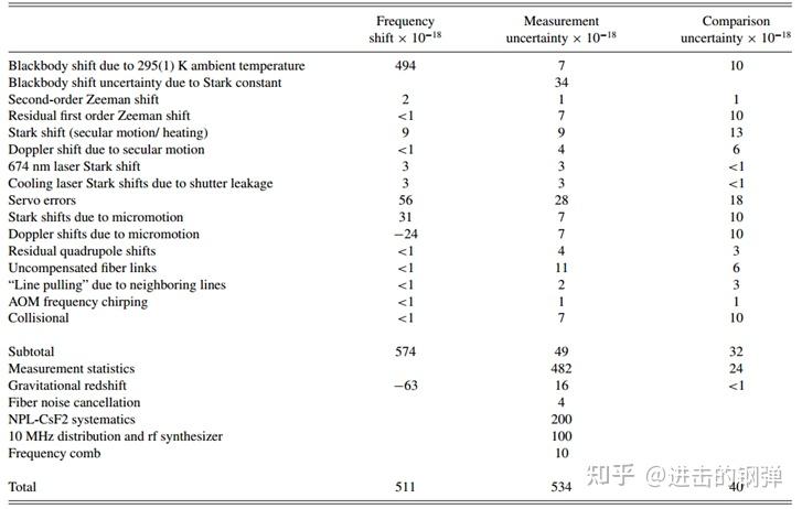 目前报导的更好的Yb钟在不不变度和不确定度上均已到达E-18级,此中不不变度为3.2E-19@10^5 s,不确定度如上表为1.4E-18[6]