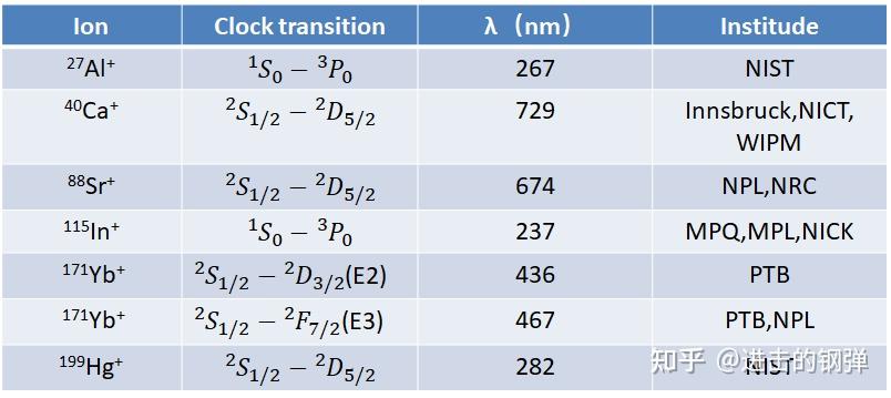 在离子光钟的研造方面次要有以下科研单元停止了相关离子的尝试