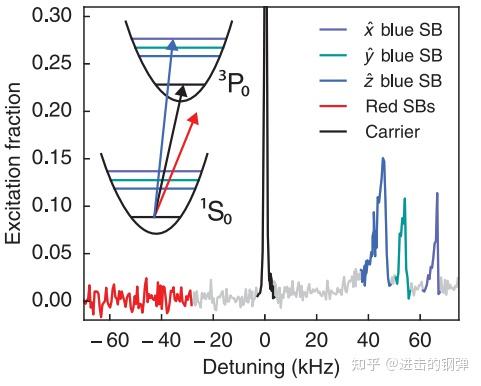 载波边带谱能够反推出势阱深度、原子的温度等信息,进入载波后细扫则能够获得~Hz级此外谱线,那里能够大要算一下Q值(Q = 1E15 Hz / 1Hz = 1E15,是相当高的了!)