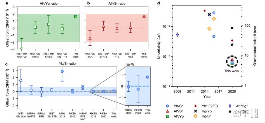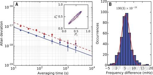 NIST报导的Al+钟的不不变度和不确定度,(后来他们还拿Al+钟和JILA结合Yb、Sr、Al做到了不确定度到E-18的频次比率丈量尝试,阿谁BACON也是个大工程,有空再更)