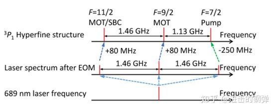 与前面Yb的能级大同小异,但有些许差别的是在一级冷却MOT中,1P1 87Sr原子由极大要率经1D2落到 *** 2, *** 1,构成冷却的黑洞严峻影响一级冷却捕捉原子效率,因而在461nm的蓝MOT中参加抽运光679nm,707nm会进步捕捉效率,接下来介绍一些比来比力新的停顿。