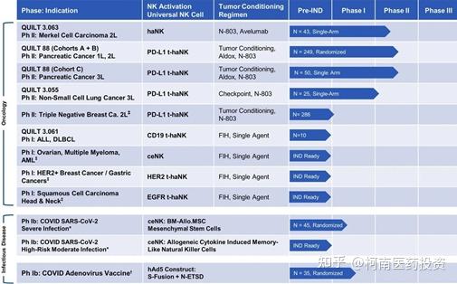 NantKwest,成立于2002年,总部在美国加州,原名Conkwest,上市前改为现名NantKwest。NantKwest是努力于开发NK细胞疗法的免疫治疗公司。其次要产物有三大系列:高表达CD16受体的haNK细胞产物、高表达特异性CAR的taNK细胞产物以及连系两者优势的t-haNK细胞产物。目前haNK全线产物均已进入Phase Ib/II 临床试验阶段。
