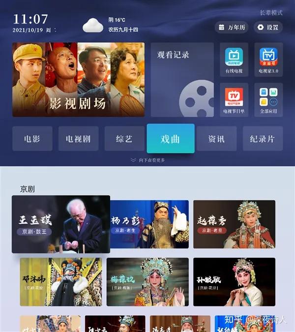 别的,现在良多的电视盒子产物都撑持“晚辈形式”那一功用,拥有愈加简洁的界面、大号的字体、日常利用较为频繁的小东西(万年历、气候预报等),在此形式下能够撑持主动播放节目,还会优先保举老年人爱看的影视节目(怀旧剧场、戏剧栏目、纪录片等)。