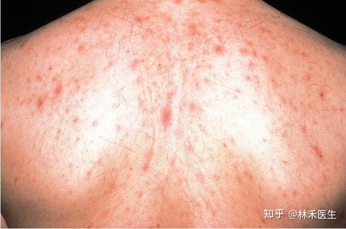 HIV传染急性期症状其次为皮疹多见,凡是呈现在发热后48~72小时,持续5-8天,皮疹表示为数量不等的曲径0.5~1cm、卵形、暗红色到深红色斑疹、斑丘疹。鸿沟清晰,不交融。无自觉症状,次要散布在上胸部,尤其在领圈区。也可发作在面部,额头和头皮,四肢少见。此外,痛苦悲伤型的皮肤黏膜、 *** 、 *** 溃疡是较为特殊的皮疹变现之一。