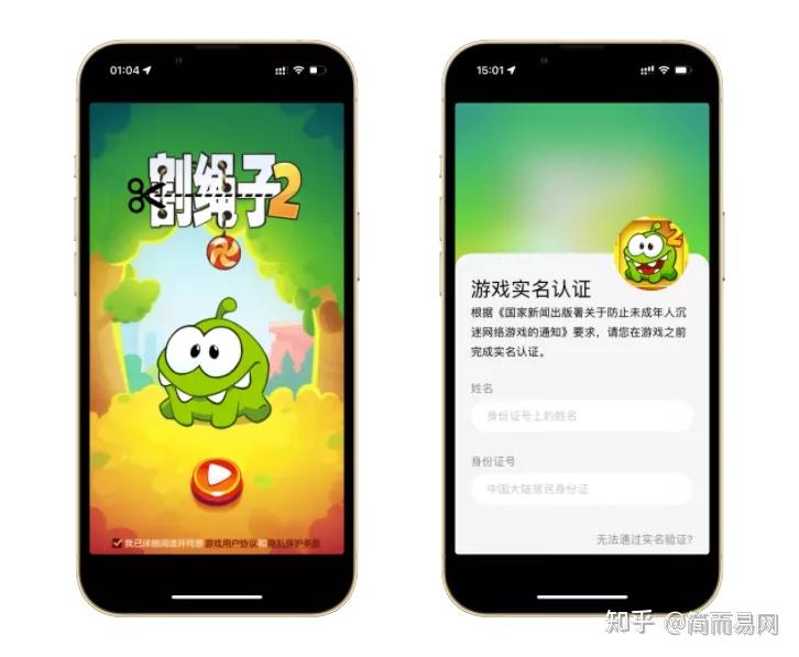 出于猎奇,我下载了《割绳子2》来尝尝。但是翻开一看,最让我震惊的不是告白,而是它还没有适应iPhone的全面屏,仍然利用了本来16 : 9的屏幕比例。合理我勾选游戏用户协议和隐私条目,筹办起头游戏的时候,一个大大的「防沉浸初始化失败」提醒弹出来,间接告诉我无法进入。在重启 App 再翻开之后,防沉浸系统初始化末于胜利,我也得以停止实名认证并进入游戏。