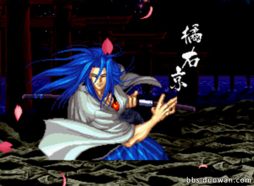 而SNK的侍魂,最后设想的思绪就是把 武藏小次郎的典范对决搬上游戏,以至场景也叫严流岛。。。 配角霸王丸跟武藏其实不非常象,但强敌-副配角橘右京则是小次郎的翻版,招式名称都 一样: