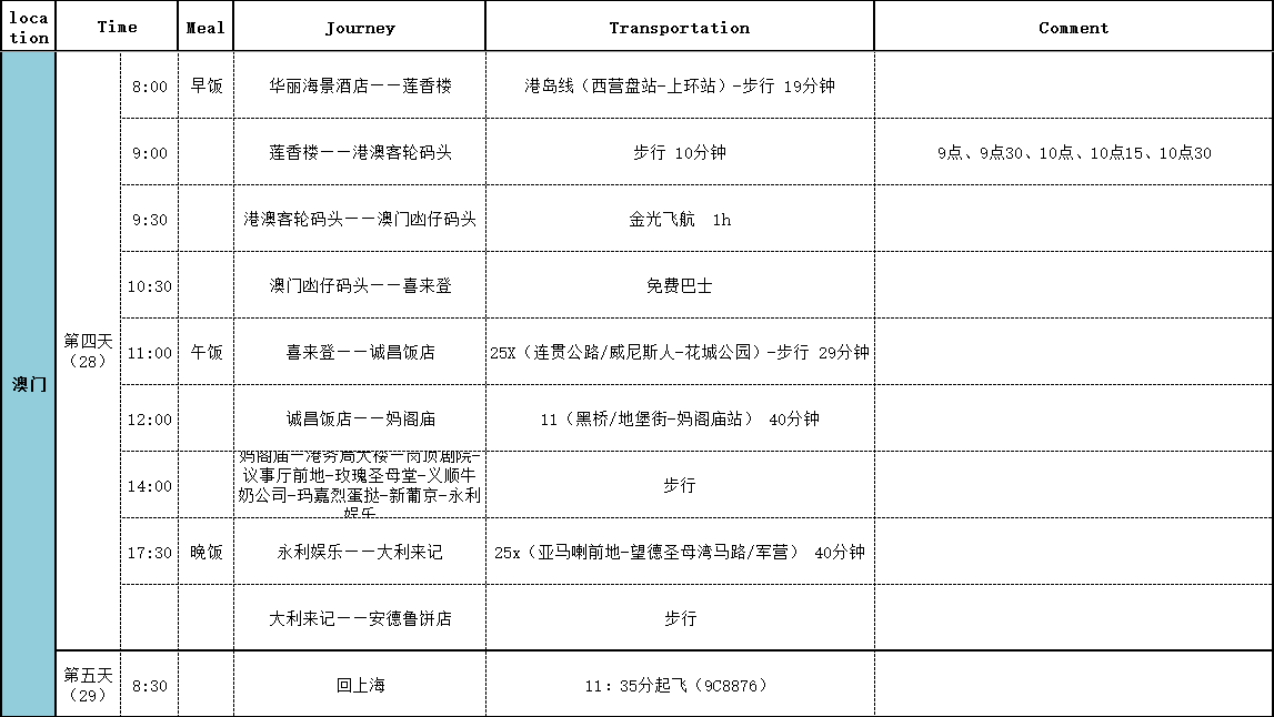 就如许,我们比及了8月底。猫大王给我下达了使命:我负责搞一个行程摆设,包罗景点的选择,交通,景点门票;她负责美食、购物。并且我的方案必需把她所标注的购物、美食全数包罗进去。于是,颠末3次改版之后,我们的方案也定下来了,切确到了分。