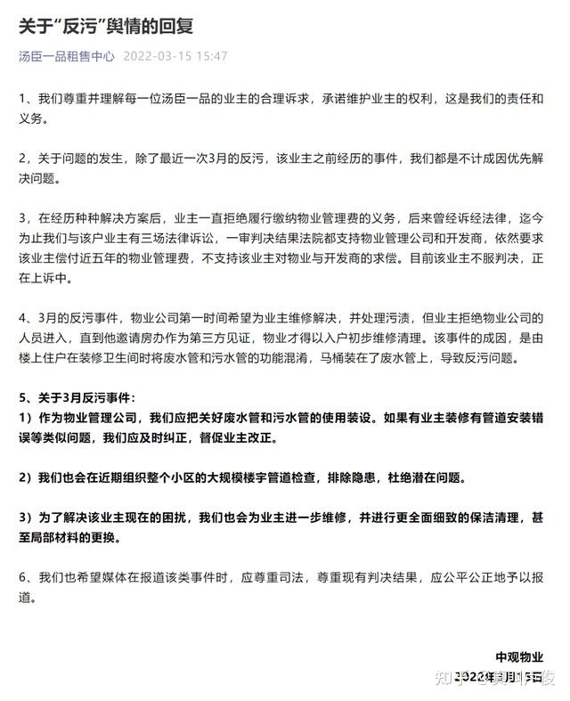 不外也有好的一面,疫情缓解之后汤臣一品将对整个社区的管道停止一次全面排查以根绝隐患