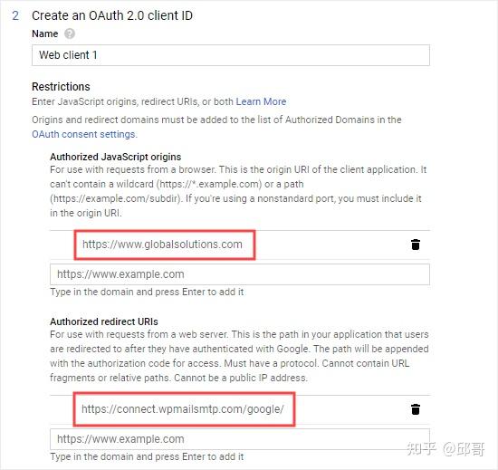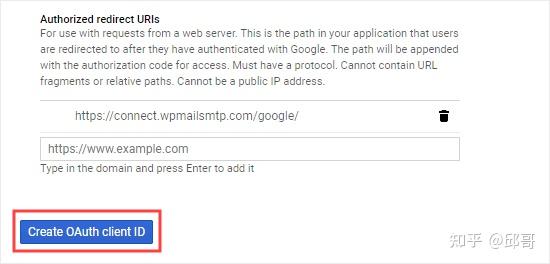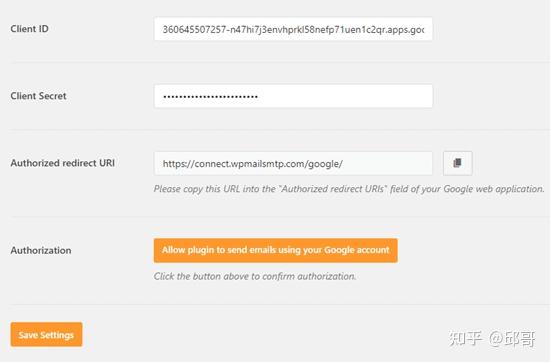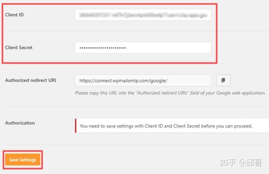 在“受权重定向 URI”中,您需要输入 WP Mail *** TP 设置中的重定向 URL。