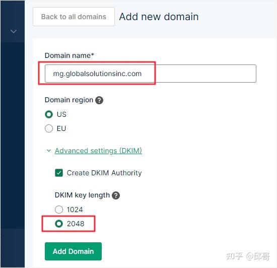 在那里,您应该选中“创建 DKIM 受权”框,并为“DKIM 密钥长度”选择 2048。