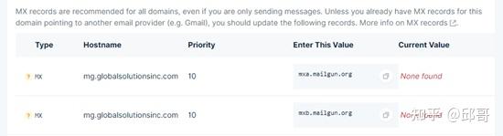 保留第二条 DNS TXT 记录后,您还应该从 Mailgun 帐户添加 MX 记录。