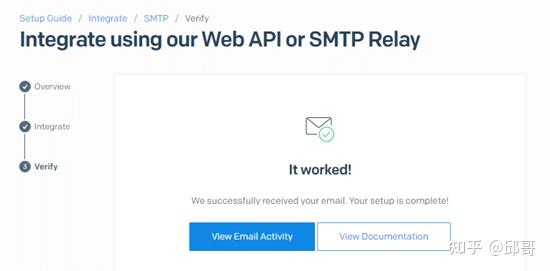 如今您的测试电子邮件已胜利发送,请返回带有您的 SendGrid API 页面的选项卡。