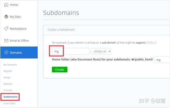 为此,请登录您的虚拟主机帐户并根据他们的申明添加子域。若是您利用的是 Bluehost,则需要转到域 » 子域页面。