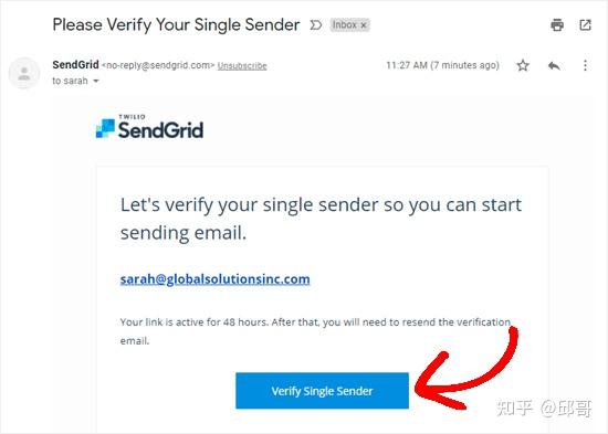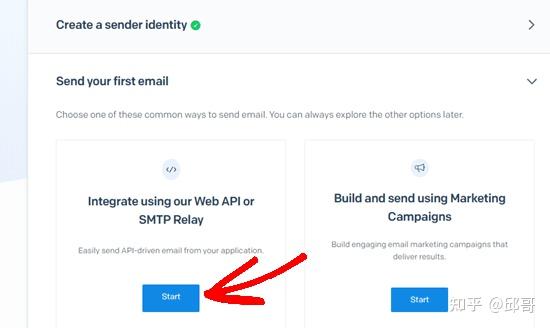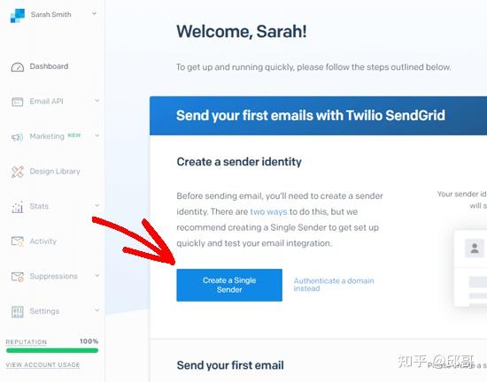 您的之一步是创建发件人身份。继续并单击“创建单个发件人”按钮。