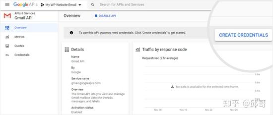 接下来,您将看到有关 Gmail API 的一些信息。只需单击启用按钮。