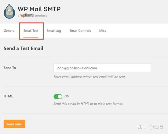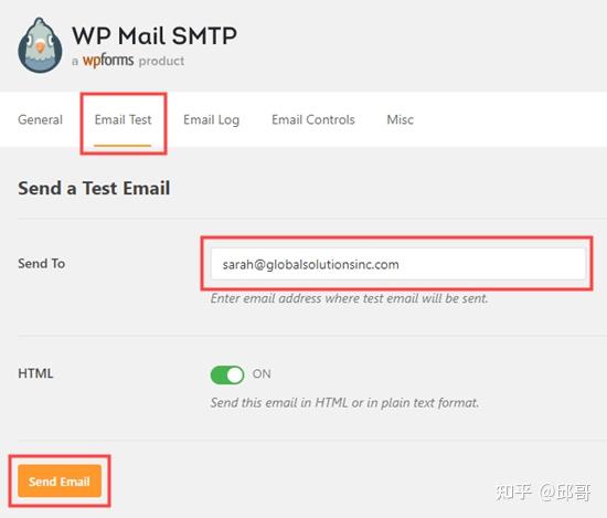 接下来,您需要验证您的集成能否一般工做。起首,转到 WP Mail *** TP 设置中的“电子邮件测试”选项卡。然后,输入您的电子邮件地址并单击发送电子邮件按钮。