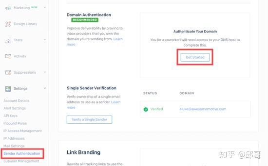 为此,您需要转到 SendGrid 帐户中的设置 » 发件人身份验证页面。在“验证您的域”下,您需要单击“起头”按钮。