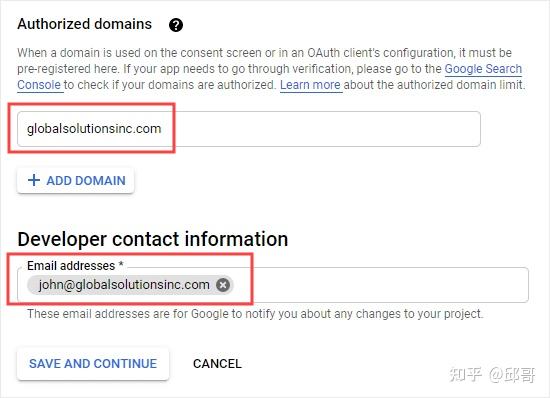 之后,向下滚动到“受权域”部门,单击“添加域”按钮,然后输入您的域名称。