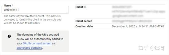 在那里,您将看到您的客户端 ID 和客户端密码。