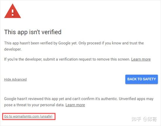那将翻开一个弹出窗口,您需要在此中选择您的电子邮件帐户。然后您将看到一个警告屏幕。只需单击“高级”链接,然后单击“转到 wpmail *** tp.com”链接继续。