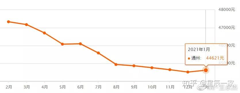 通州1月二手房均价 44621 元/m²