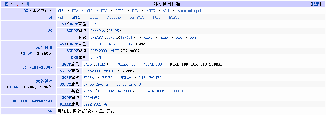 附图是 *** 上的一张表格,言简意骇的归纳综合了挪动收集的演进过程。
