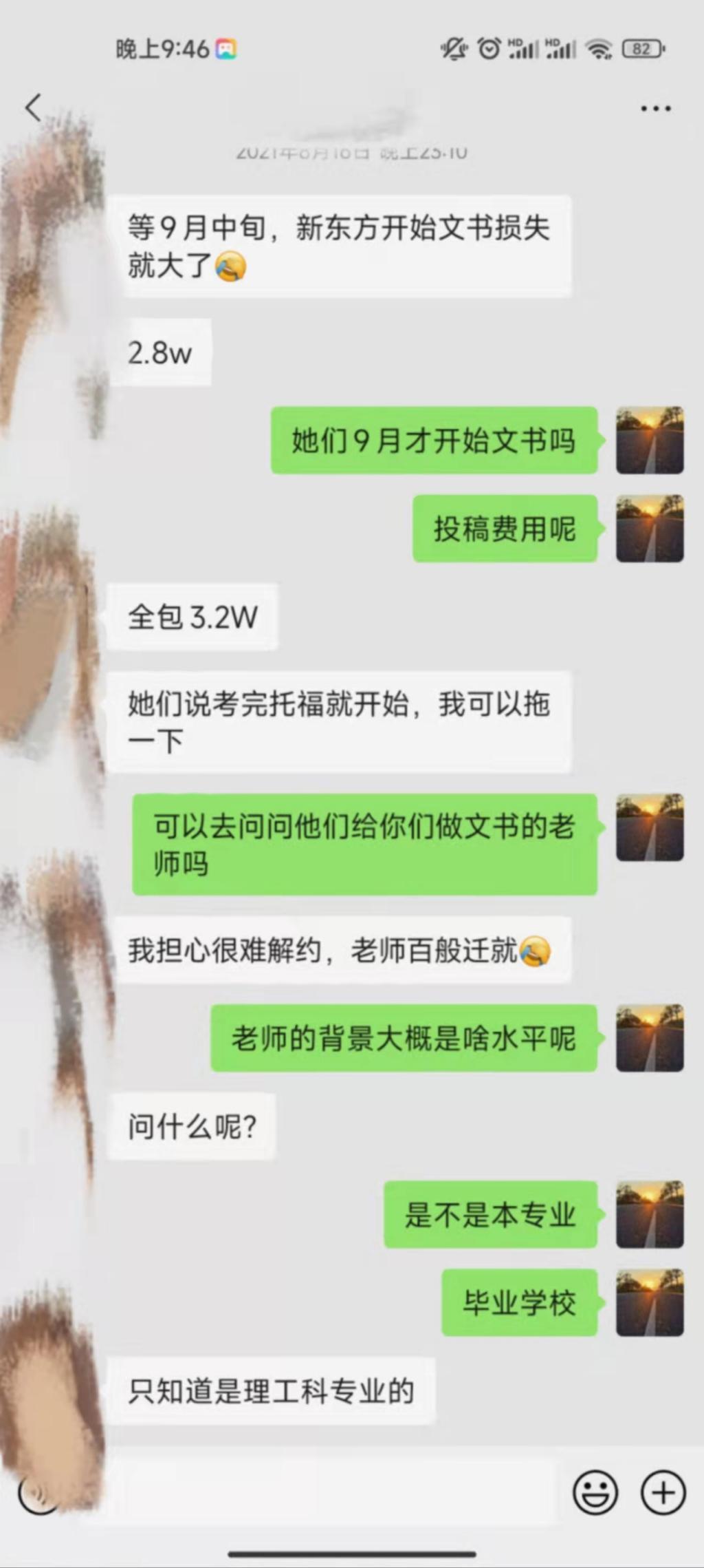 其时家长跑过来找我们,我们秉着不想让家长多花钱的原则,暗示能够给他们免费的文书提拔建议,但是关于家长来说,多花点钱倒不妨,孩子一生的前途才是最重要的: