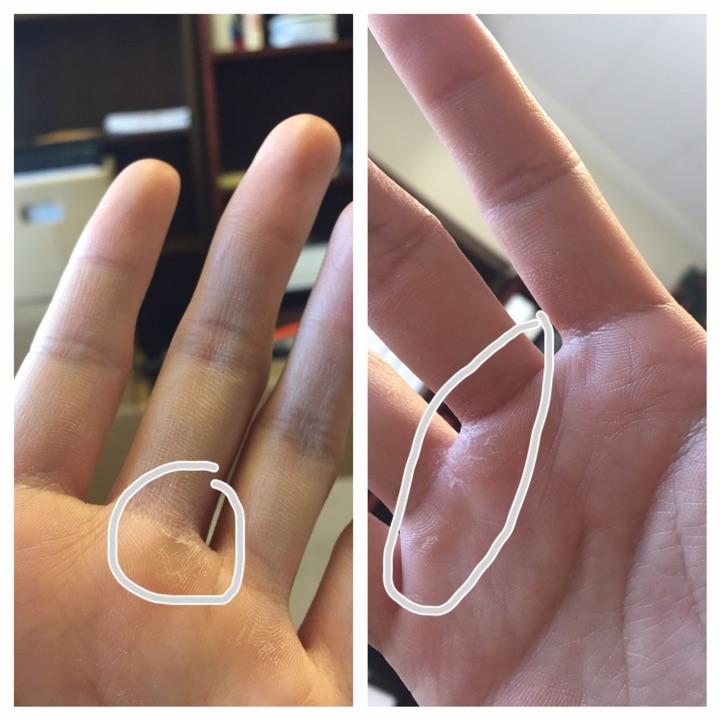 不外手上会练出茧子那时必然的,因为钢管舞最根本的要求就是要有强大的抓力来握管。一起头最容易破皮的处所就是手掌中指下面的部门(如下图),训练完的当天洗澡都得小心点。不外时间长了磨出茧子了就不会再破皮了,抓管神马的大丈夫。并且那点茧子算啥啊??我不说底子没人看得到,握手也觉得不出来,若是不是我主动说的话连我男票都看不出来我手上练出茧子了。。。