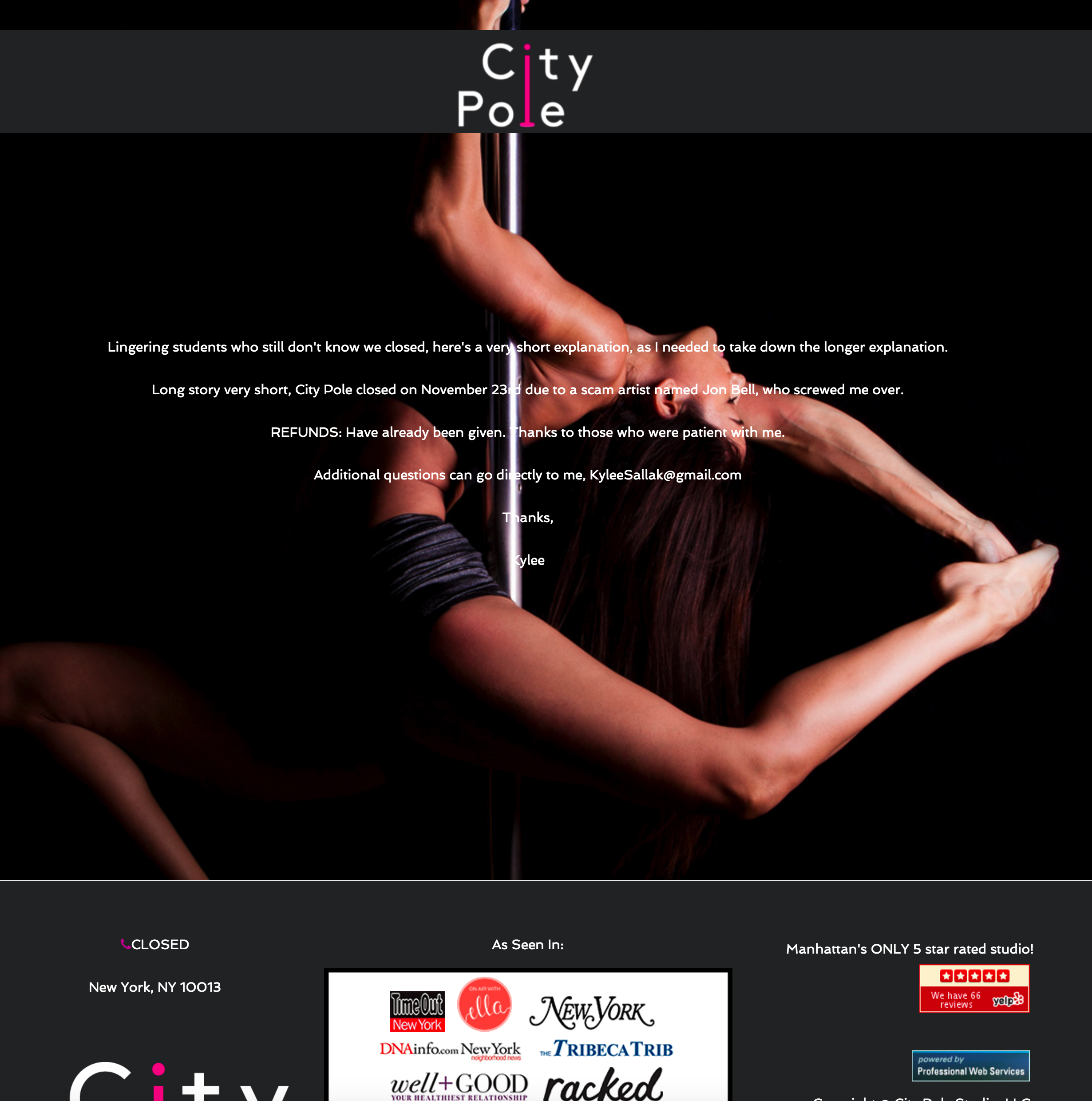 更狗血的是,他们的owner在关张的时候还被人骗了,大要就是原来有小我说要从她手里买下那家亏钱的钢管舞教室,于是她跟房东延了租期多付了很多反租什么的,但是阿谁人最初其实是个骗子,招致本来的owner原来方案好的关张经费都没有了,给教师的年末奖都发不出来,有些学生的钱也退不了了,还发了一封长长的邮件来解释。。。也是可惜。。。