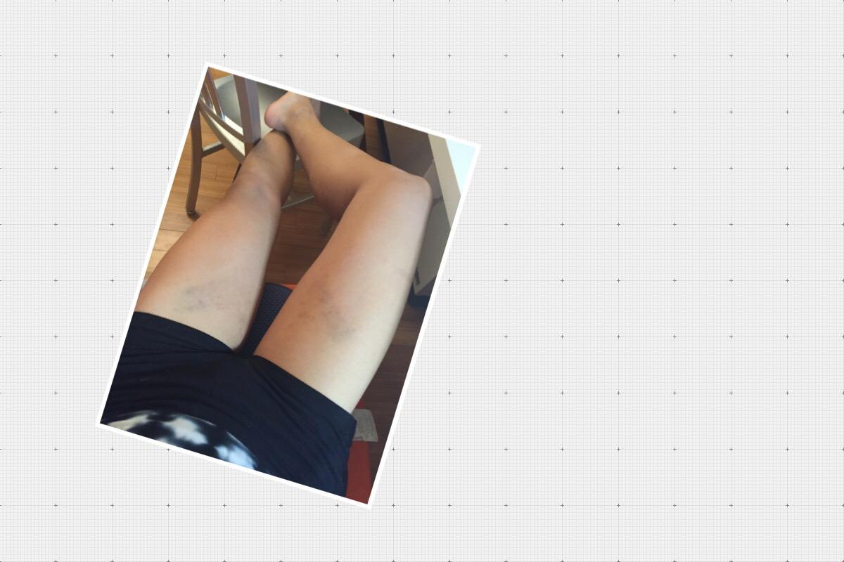 至于瘀青,挺常见的,但可能因为我皮糙肉厚(?)很少出瘀青,翻了翻相册最严峻的也就是下图的样子。