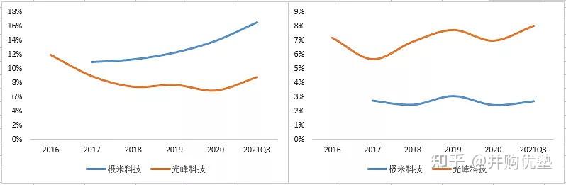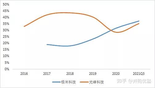 从整体上看,光峰科技综合毛利率要高于极米科技,不外极米科技毛利率呈不竭提拔趋向,目前略高于光峰科技。此中: