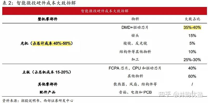而且,从成本构成上来看,光机占全数硬件成本的50%摆布(激光光机占比更是高达65%以上)。因而,从某种意义上来说,买投影就是买光机。