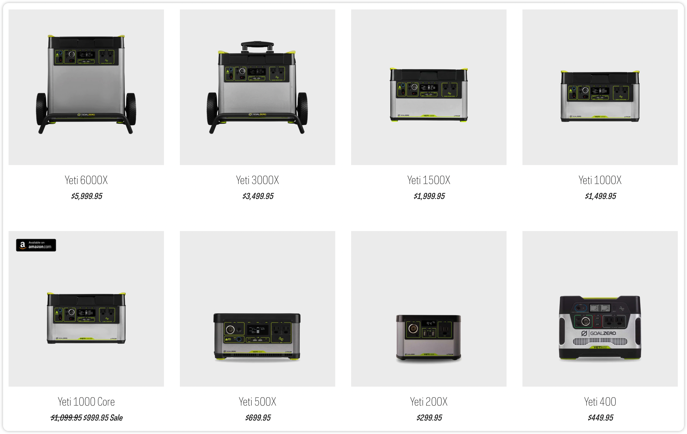 取自 GoalZero 官网代表型号:Yeti 3000X、Yeti 6000X