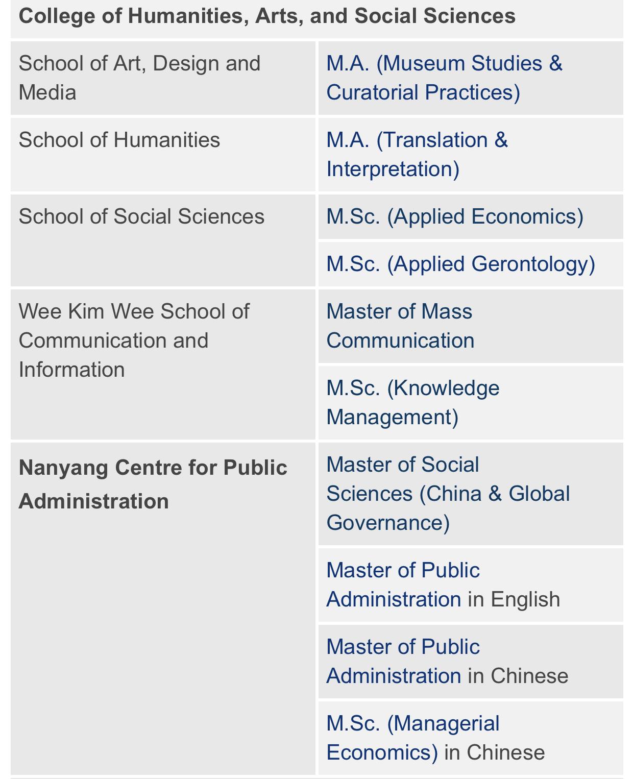 关于其开设研究型硕士项目标专业,能够先根据学院来分。开设研究型硕士项目标共有6个学院,每个学院的专业如下表所示。它的商学院是新加坡更好的商学院,在亚洲也排名前三,仍是新加坡独一及亚洲第三所同时获得欧洲量量开展系统及美国国际办理教育结合会两项认证的商学院,但是按照其目前官网的信息,商学院没有研究型硕士项目,只要Phd。比力保举它的工学院相关专业,好比它的质料科学与工程专业在2017年QS世界排名中排名第7,在2019年QS世界专业排名中排名第3。它的计算机专业在2019年QS世界专业排名中排名第12,2019年USNEW世界专业排名中排名第2。它的情况专业在2019年QS世界专业排名中排名第14。化学专业在2019年QS世界专业排名中排名第9。