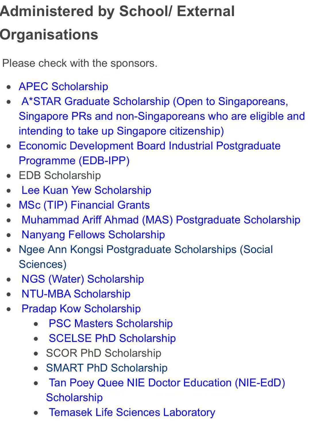 最初再说一下南洋理工大学的奖学金政策,次要分为两大类,一类是学校招活力构供给的奖学金,关于国际留学生次要有以下三个奖学金: