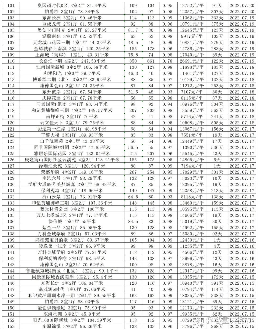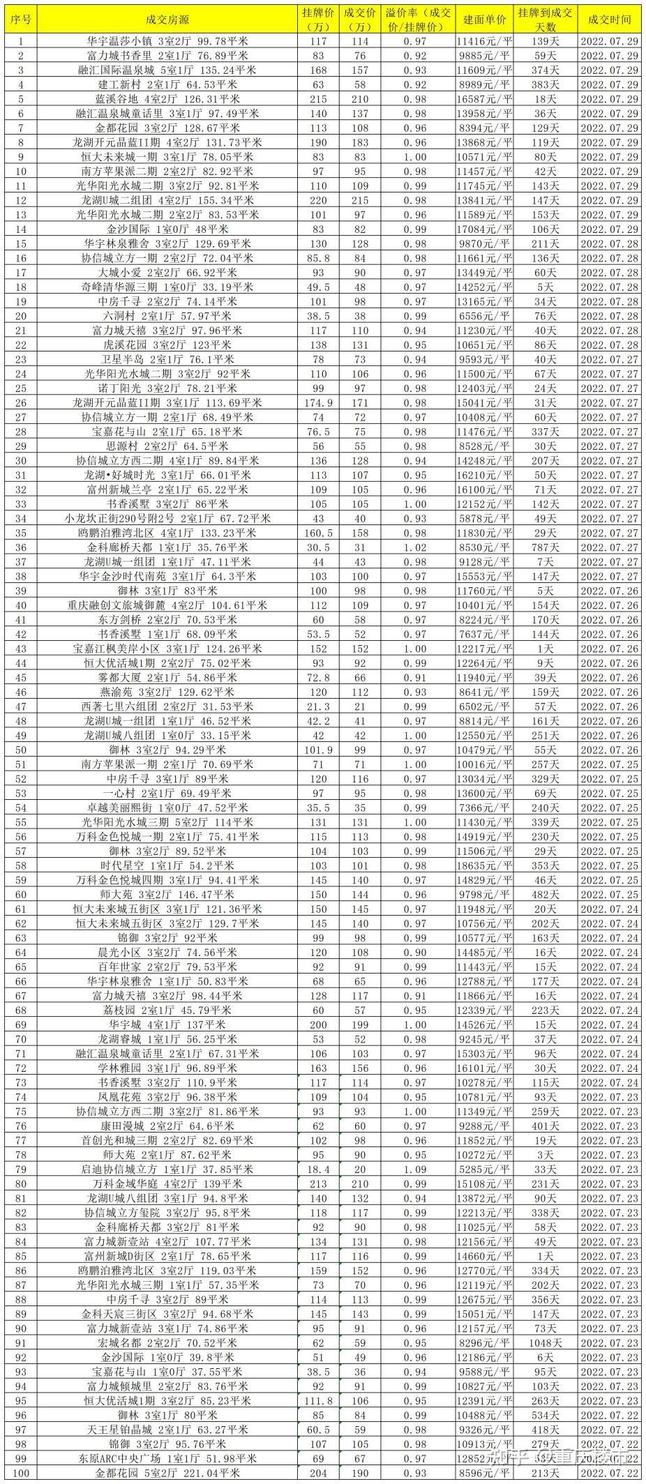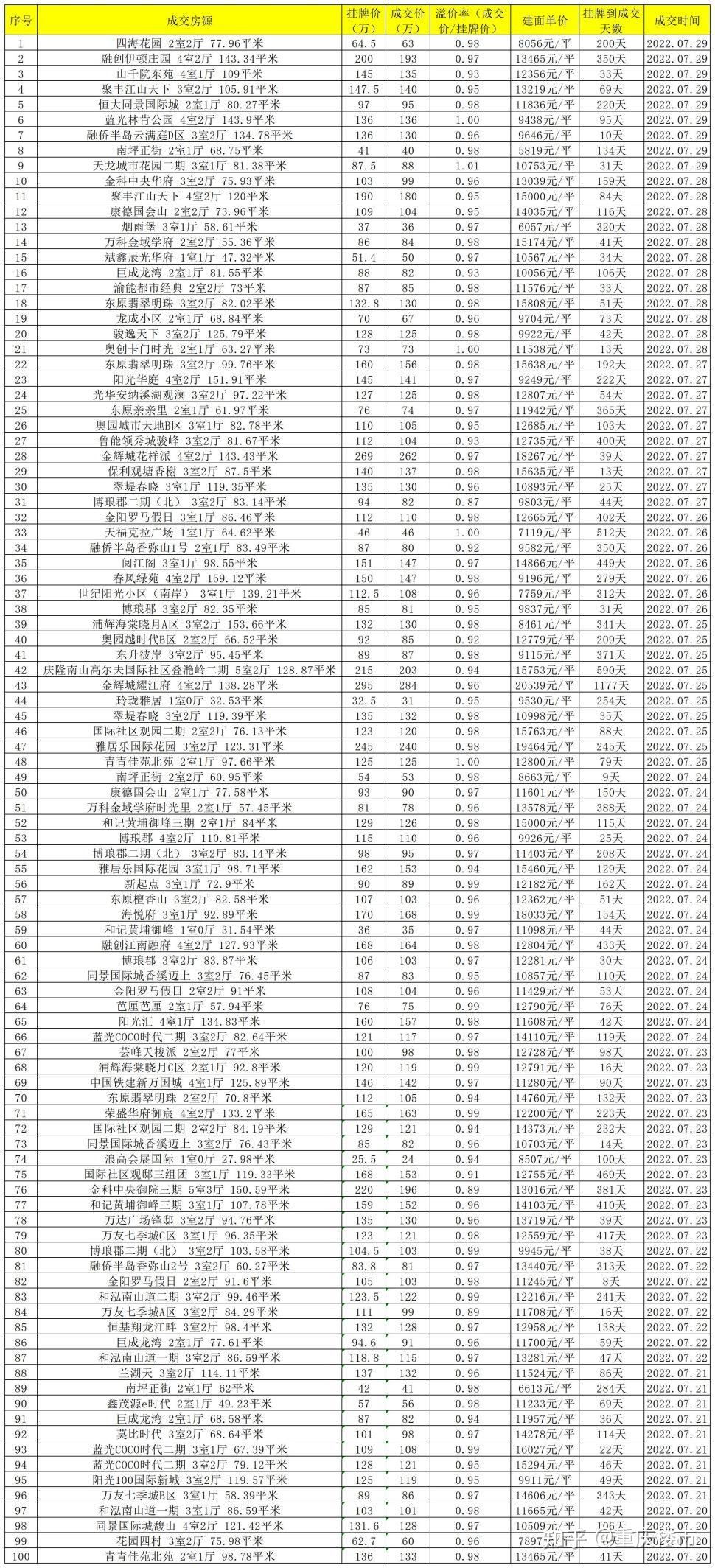 重庆二手房各区实在成交数据