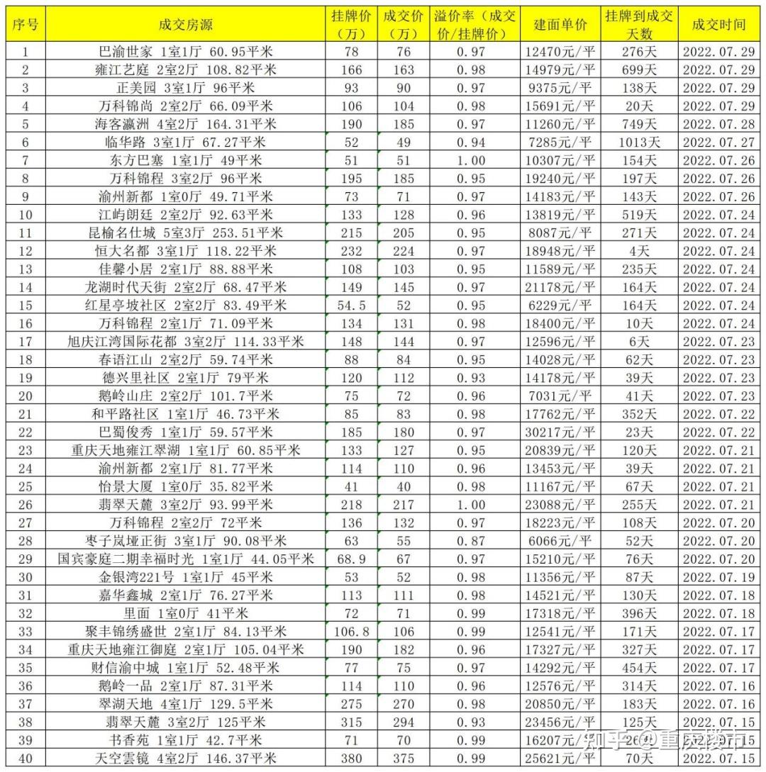 刚刚!重庆1087套二手房实在成交价曝光,更低5000多元一平,你家小区房价咋样了?