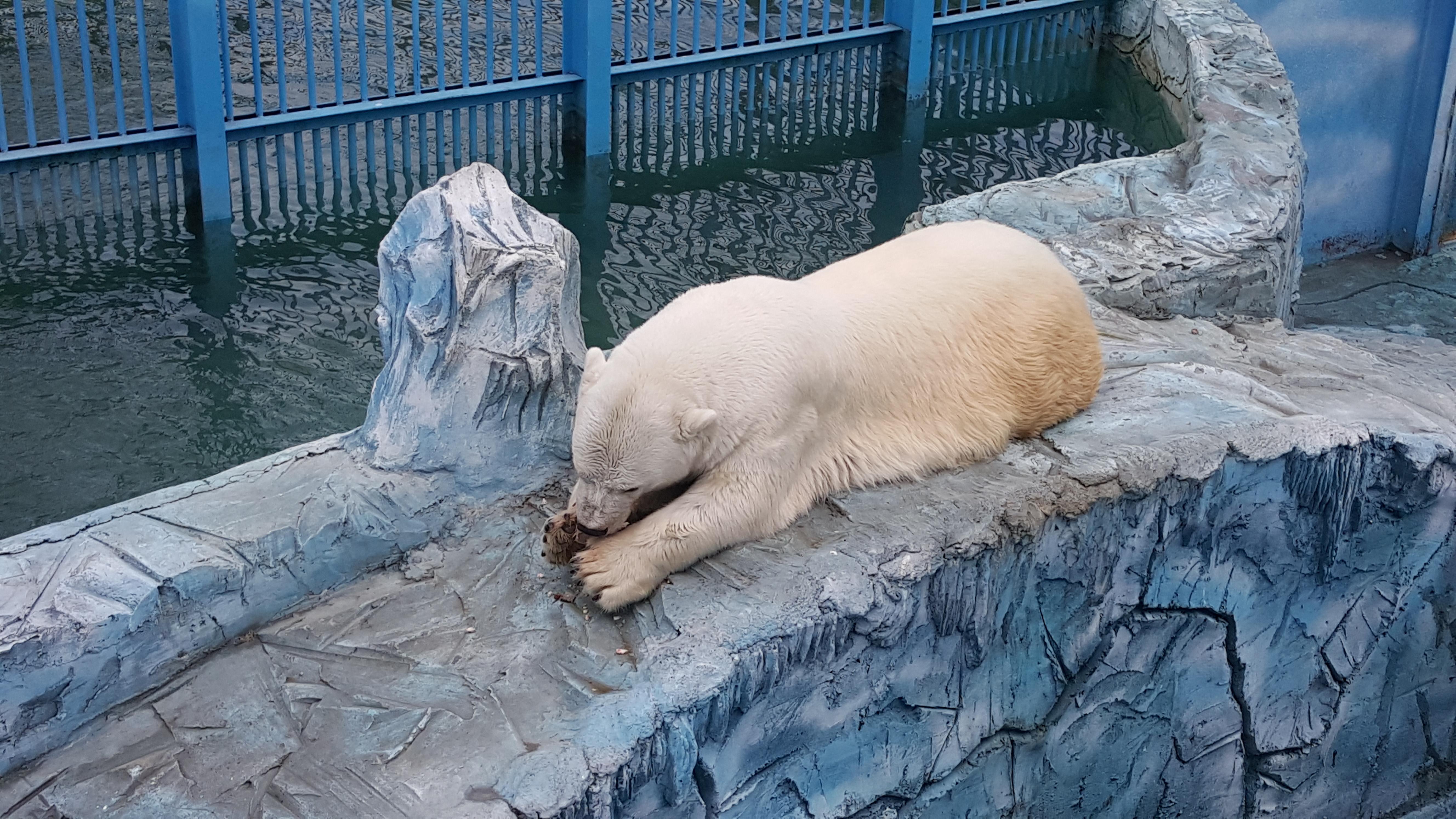 叶卡动物园的北极熊,那只北极熊不孤单,因为还有一只北极熊是她老伴儿。那是叶卡的小明星