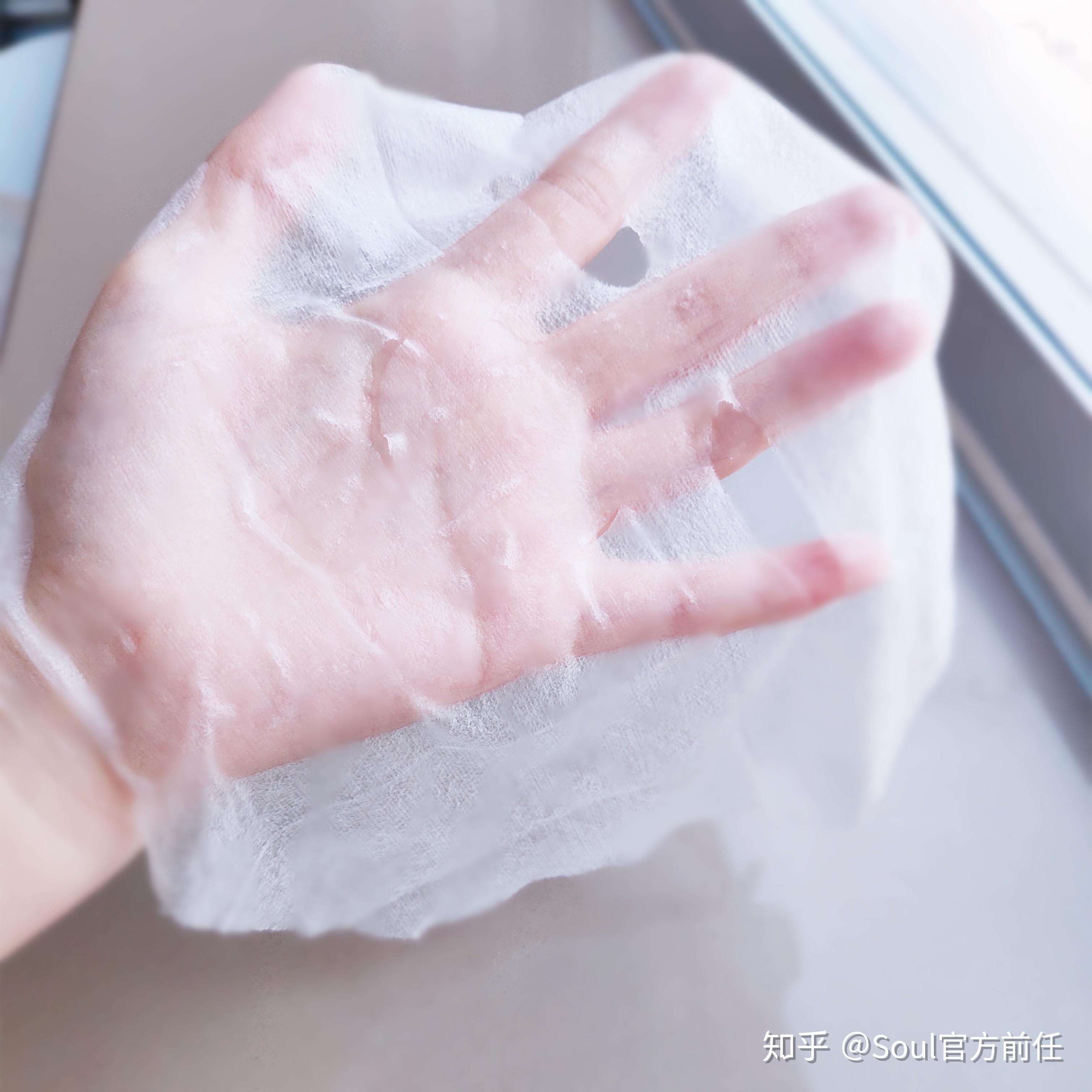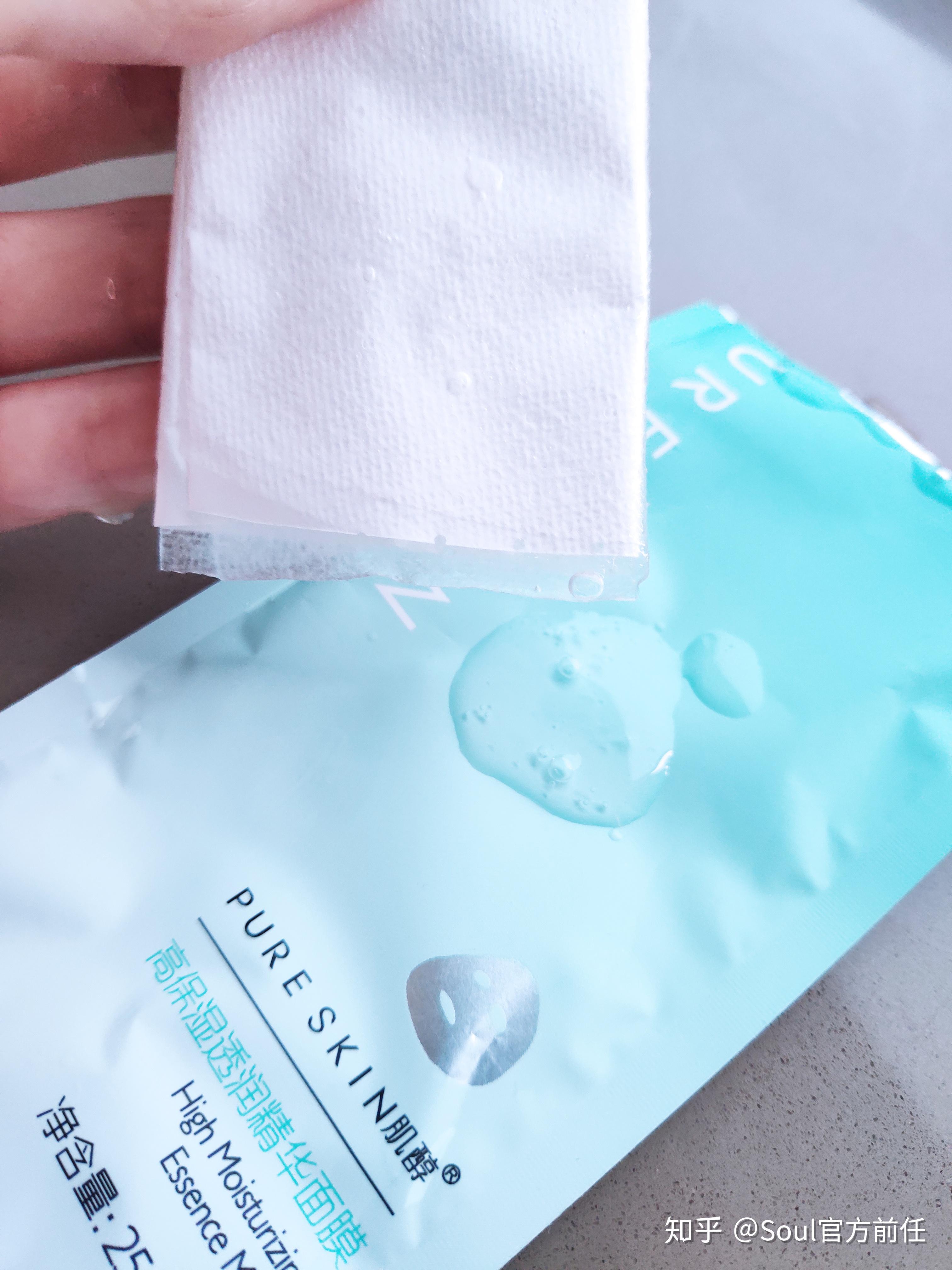 pureskin的高保湿面膜纸十分薄,弹性也ok,边边角角包的很严,敷上之后几乎隐形。