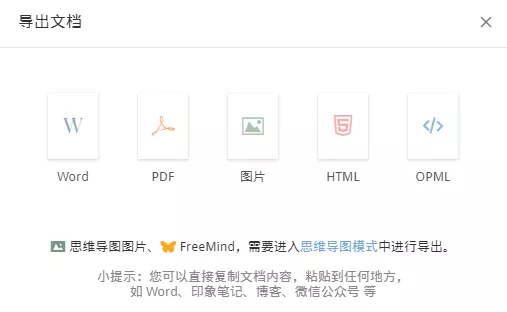 撑持导出为以下那几种形式,并且粘贴到 Word 里面的时候,同样能够保留文本的层级。