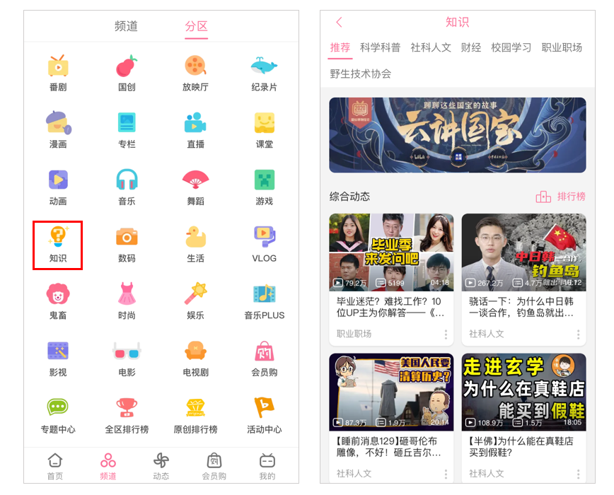 本年,B站上线了常识分区,为浓郁的进修气氛建立添砖加瓦。