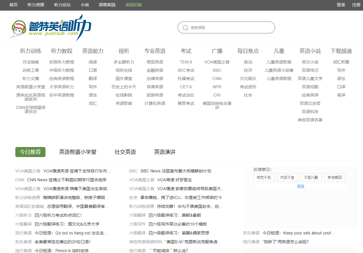 说到学英语,不能不保举那个老牌的英语进修网站——普特英语听力,内容详细且全面。