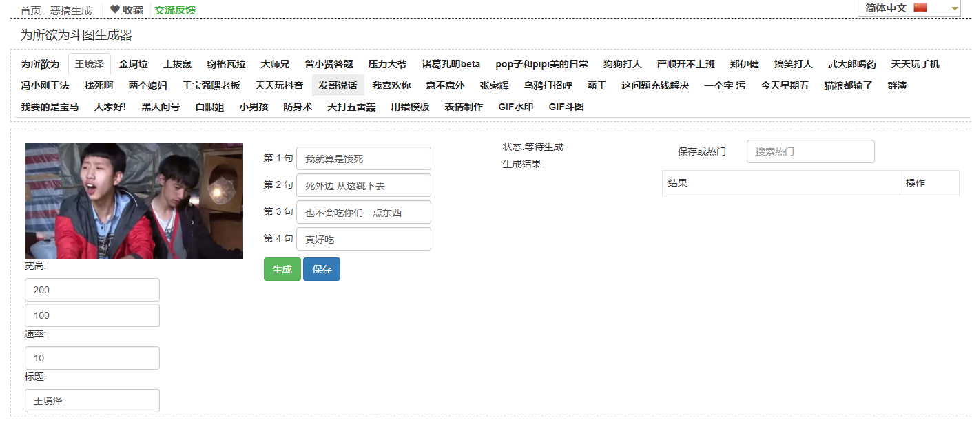 网站里面专门开设了一个恶搞生成专区,专门为生成各类搞笑脸色图片而生。